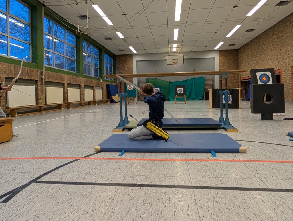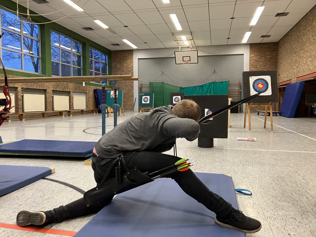 Und auch wenn dies für alle Bogenschützen essenziell notwendig ist, macht sich bei Parcoursschützen häufig nach einigen Wochen ein beginnender „Lagerkoller“ bemerkbar. Um dem entgegenzuwirken, lockern wir unsere Trainingseinheiten regelmäßig etwas auf. Die Halle bietet alles was man braucht um fürs Gelände zu trainieren.Bergabschüsse lassen sich hervorragend mit Kästen simulieren. Trampoline bieten einen wackeligen Untergrund. Es gibt jede Menge Geräte die sich dazu eignen den Schusskanal zu begrenzen. Der große Vorteil dabei: für den Trainer ist es deutlich einfacher Fehler zu erkennen und zu korrigieren als im Gelände. Außerdem bleibt trotz Bodenakrobatik die Kleidung sauber.